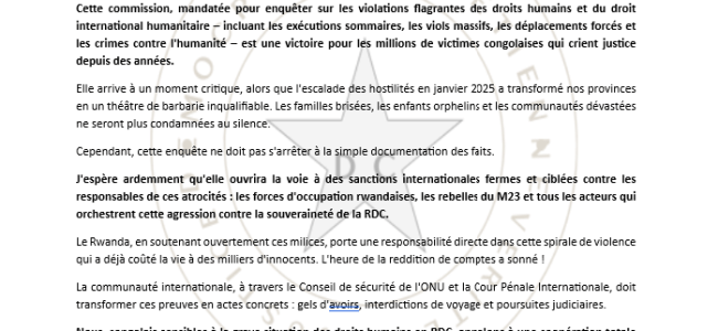 Face à ces affres – viols comme punition collective, enlèvements comme outil de terreur, exécutions comme message d’intimidation –, le silence international ne peut plus durer. Les femmes du Kivu ne méritent pas cet abandon.