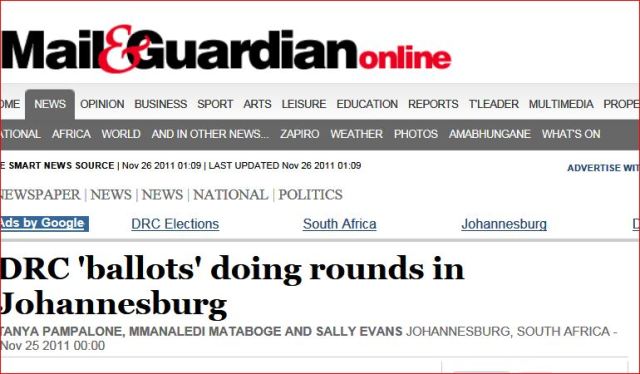Le Journal MAIL & GUARDIAN confirme que des bulletins de vote tant de l election presidentielle que des legislatives circulent allegrement dans les rues de Joahannesburg ET IL JETTE UNE LUMIERE SOMBRE SUR LA CREDIBILITE DE CELUI QUI A gagne le marche de l impression DES BULLETTINS CONGOLAIS en Afrique du Sud…