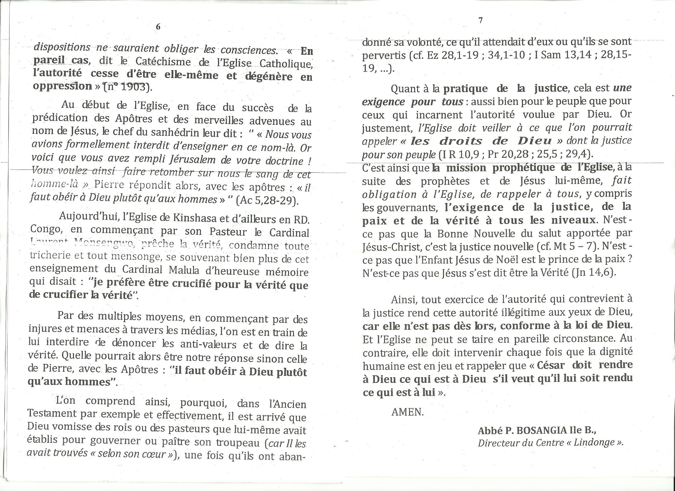 LE TEXTE DE L’HOMELIE DE LA MESSE DU 07/01/2011 A SAINT JOSEPH-MATONGE