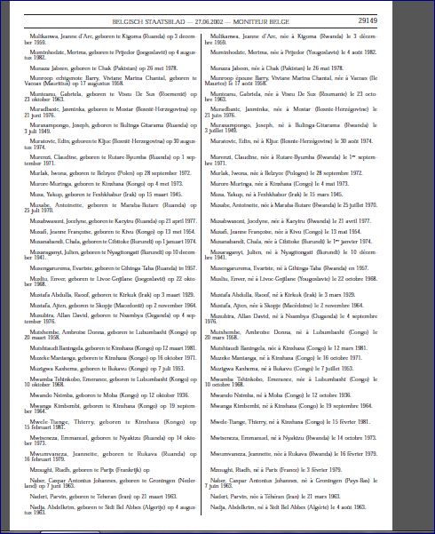 MWANDO NSIMBA, MINISTRE SORTANT DE LA DEFENSE DE LA R.D.CONGO ET ….CITOYEN BELGE: VOICI UNE PREUVE OFFICIELLE ET IRREFUTABLE