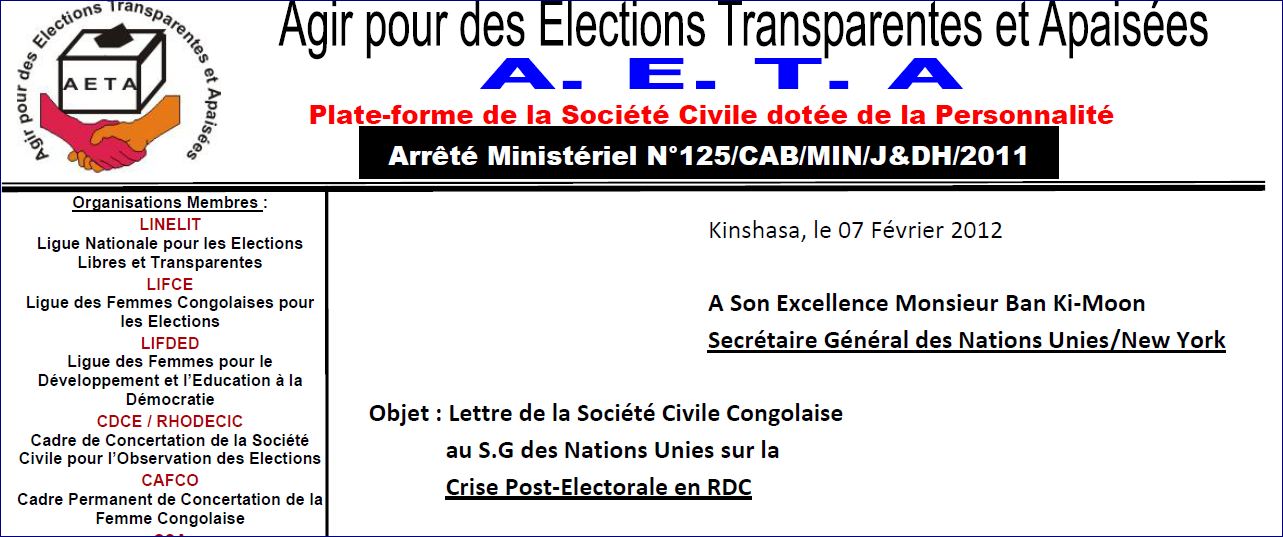Objet : Lettre de la Société Civile Congolaise