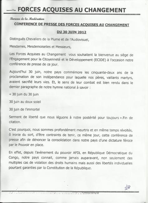 VOICI LE TEXTE DE LA CONFERENCE DE PRESSE TENUE CET APRES-MIDI A 15H00 AU SIEGE DE L ECIDE PAR TOUTE L’ OPPOSITION POLITIQUE REUNIE TOUTES TENDANCES CONFONDUE ( UDPS SIEGEANT AU PARLEMENT ET NON SIEGEANT, MPP, UNC, ECIDE, FAC, ET TOUTES LES AUTRES FORMATIONS POLITIQUES SIEGEANT OU NE PAS SIEGEANT AU PARLEMENT).