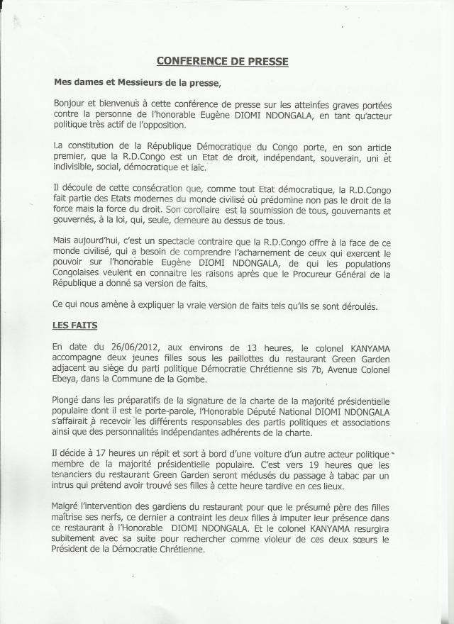 CONFERENCE DE PRESSE DE MAITRE RICHARD BONDO, AVOCAT DE LA DEMOCRATIE CHRETIENNE