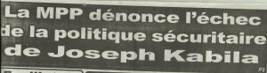 LA M.P.P. DENONCE L’ECHEC DE LA POLITIQUE SECURITAIRE DE JOSEPH KABILA