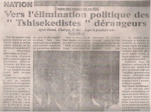 TRAQUE DES OPPOSANTS EN RDC: VERS L’ELIMINATION POLITIQUE DES « TSHISEKEDISTES » DERANGEURS / TEMPETE DES TROPIQUES 11/01/2013