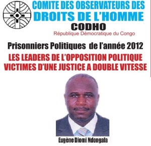 Depuis le mois de  juin 2012, le député Diomi Ndongala a été privé de tous ses droits civils et politiques et sa personne a fait l’objet de gravissimes violations des droits de l’homme. Actuellement, des pressions sont exercée sur lui  – sous forme du chantage d’une épée de Damoclès pointée contre sa tête – afin qu’il renonce à sa liberté d’expression.