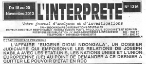 AFFAIRE DIOMI NDONGALA: UN DOSSIER QUI EMPOISONNE LES RELATIONS DE JOSEPH KABILA AVEC LES USA, L’UA ET L’EU / JOURNAL INTERPRETE
