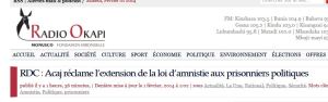 RDC : Acaj réclame l’extension de la loi d’amnistie aux prisonniers politiques /RADIO OKAPI