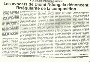 A LA CSJ LES AVOCATS DE DIOMI NDONGALA DENONCENT L’IRREGULARITE DE LA COMPOSITION / AFRICA NEWS 14.03.14