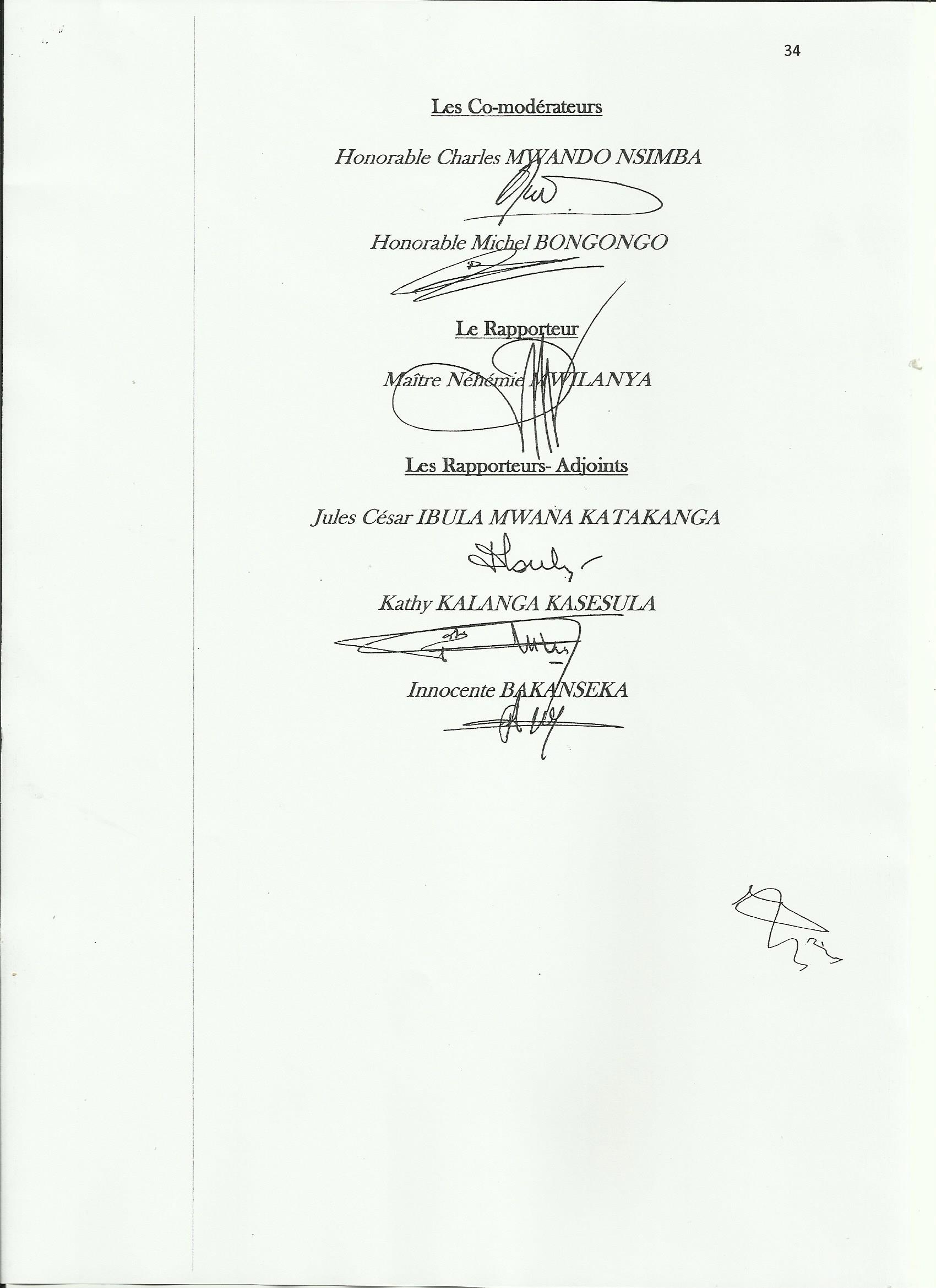 RAPPORT DES « CONCERTATIONS NATIONALES » avec la résolution demandant la libération des prisonniers politiques