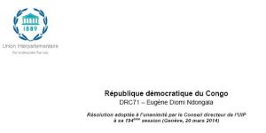 RESOLUTION ADOPTEE LE 20/03/2014 A GENEVE SUR LE CAS DE L’OPPOSANT EUGENE DIOMI NDONGALA PAR L’UNION INTERPARLAMENTAIRE/ UIP