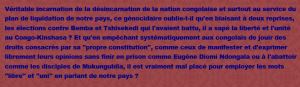Véritable incarnation de la désincarnation de la nation congolaise et surtout au service du plan de liquidation de notre pays, ce génocidaire oublie-t-il qu’en biaisant à deux reprises, les élections contre Bemba et Tshisekedi qui l’avaient battu, il a sapé la liberté et l’unité au Congo-Kinshasa ?
