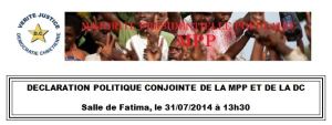 DECLARATION POLITIQUE CONJOINTE DE LA MPP ET DE LA DC / KINSHASA, SALLE DE FATIMA, 31/07/2014