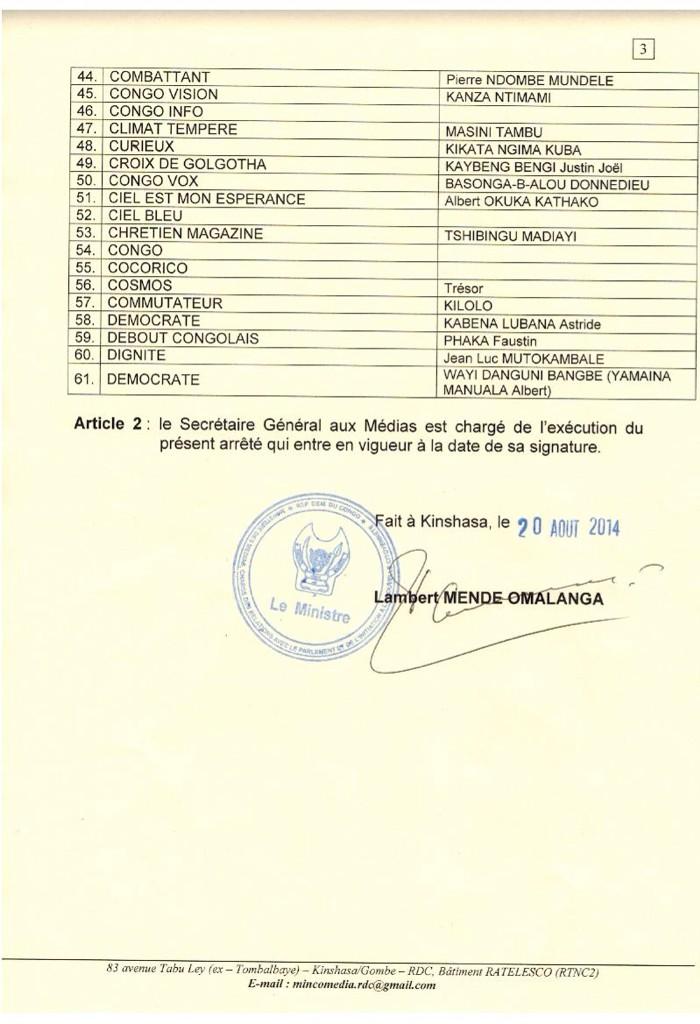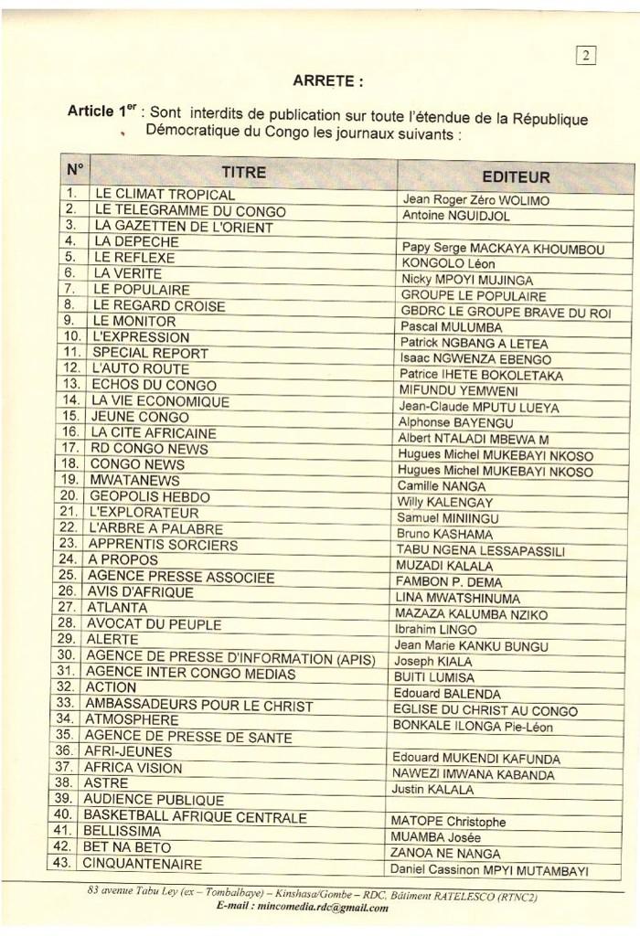 LE POUVOIR KABILA S’ATTAQUE AUX MEDIA ET AUX JOURNALISTES / LISTE DES ORGANES DE PRESSE INTERDITS DE PUBLICATION+DERNIERS CAS DE POURSUITES AL ENCONTRE DE JOURNALISTES