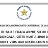 ENLEVEMENT DE M.LLE FUALA ANNIE, SŒUR DU PRESIDENT EUGENE DIOMI NDONGALA, CETTE NUIT A 3H00 DU MATIN, DE SON APPARTEMENT VERS UNE DESTINATION INCONNUE