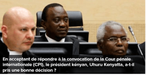 Mercredi, M. Kenyatta, 52 ans, deviendra néanmoins le premier chef d’Etat à comparaître durant son mandat devant la CPI. Il a déjà comparu une fois devant la CPI, mais avant son élection à la magistrature suprême en mars 2013.