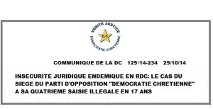 LA DEMOCRATIE CHRETIENNE DENONCE L’INSECURITE JURIDIQUE QUI SEVIT EN RDC: LE CAS FLAGRANT DES OCCUPATIONS EN SERIE DES LOCAUX DI SIEGE NATIONAL DE LA DC A KINSHASA