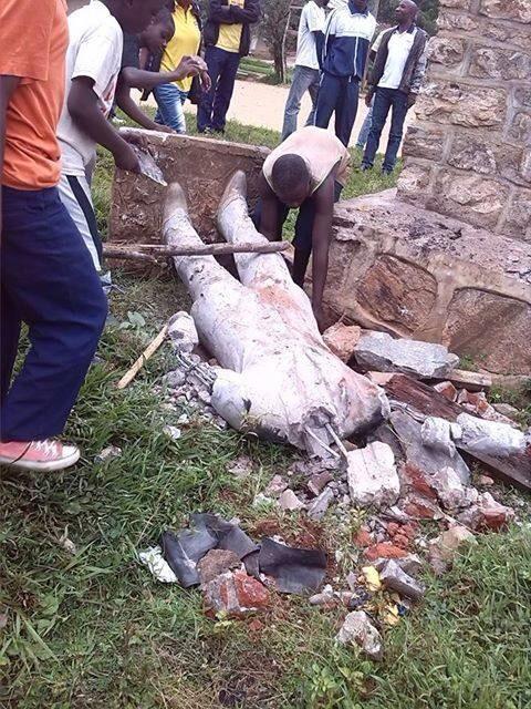 LE MONUMENT A KABILA DETRUIT PAR LA POPULATION APRES AVOIR ETE CALCINE AVEC UN PNEU – SUPPLICE DU COLLIER