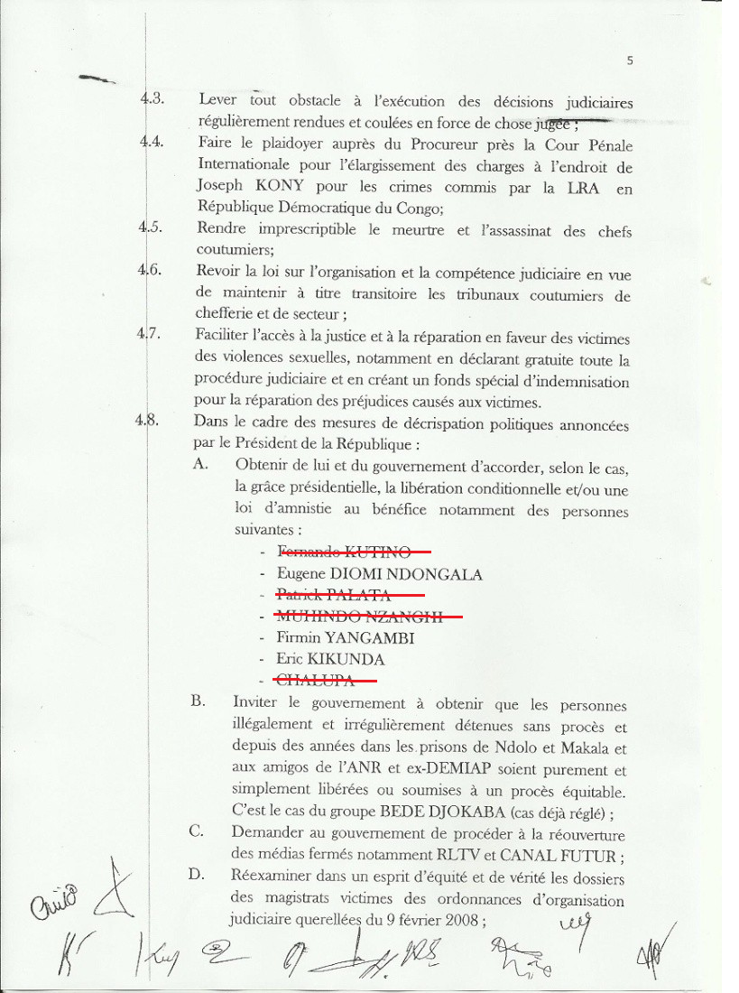 Il en est de même de la libération réclamée du Député Diomi Ndongala et le suivi du dossier du sénateur J. Pierre Bemba ainsi que des autres compatriotes se trouvant dans la même situation, du moins en ce qui concerne les membres de l’Opposition politique. Kutino a été libéré certes mais se trouve dans un état grabataire constatent les Fonus. Malade, Diomi croupit encore en prison. Même son de cloche pour Jean Pierre Bemba et autres abandonnés à leur triste sort.