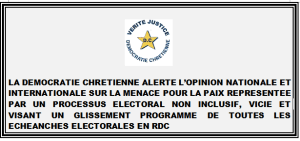 LA DEMOCRATIE CHRETIENNE ALERTE L’OPINION NATIONALE ET INTERNATIONALE SUR LA MENACE POUR LA PAIX REPRESENTEE PAR UN PROCESSUS ELECTORAL NON INCLUSIF, VICIE ET VISANT UN GLISSEMENT PROGRAMME DE TOUTES LES ECHEANCHES ELECTORALES EN RDC