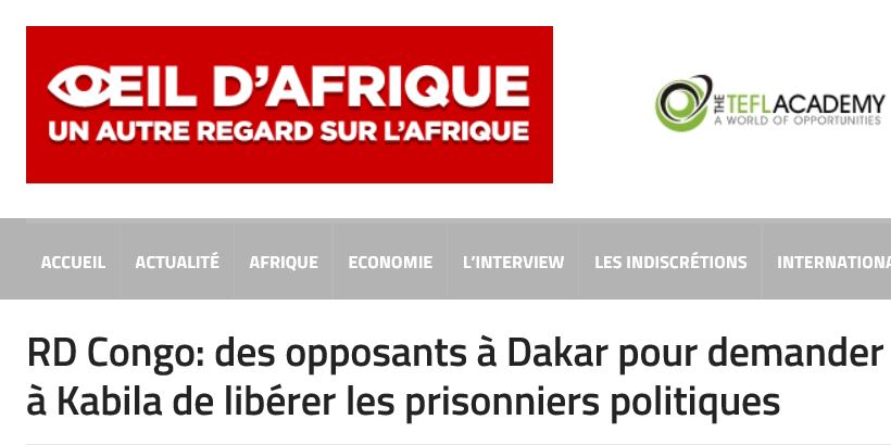RD Congo: des opposants à Dakar pour demander à Kabila de libérer les prisonniers politiques/ L OEIL D’AFRIQUE