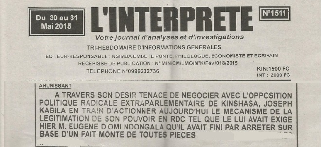 A TRAVERS SON DESIR TENACE DE NEGOCIER AVEC L’OPPOSITION POLITIQUE RADICALE EXTRAPRALEMENTAIRE, KABILA EN TRAIN D’ACTIONNER LE MECANISME DE LA LEGITIMATION DE SON POUVOIR EN RDC TEL QUE LE LUI AVAIT EXIGE EN 2012 EUGENE DIOMI NDONGALA QU’IL AVAIT FAIT ARRETE SUR BASE DE FAUSSES ACCUSATIONS.