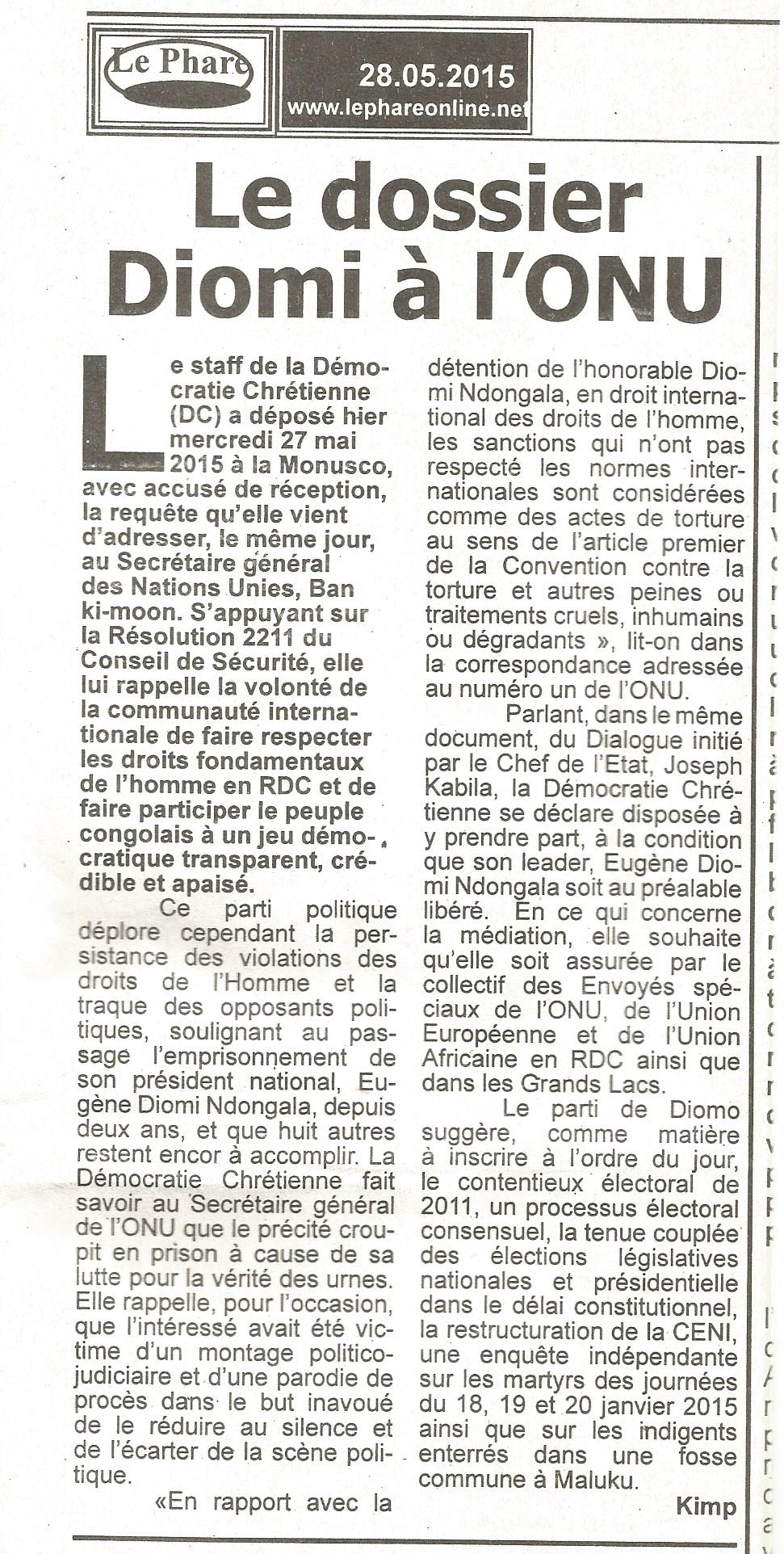 LE DOSSIER DIOMI A L’ONU / LE PHARE 29/05/15