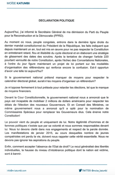 Moi je pense que la decision de Moise est noble et pacifique. C’est un exemple suivit pour la stabilite du pays