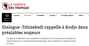 Dialogue :Tshisekedi rappelle à Kodjo deux préalables majeurs:Il s’agit de la libération des prisonniers politiques et la composition du panel des représentants de la communauté internationale, deux problèmes à résoudre avant le forum/TEMPETE DES TROPIQUES