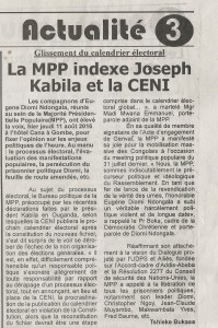 GLISSEMENT DU CALENDRIER ELECTORAL: LA MPP INDEXE JOSEPH KABILA ET LA CENI / LE PHARE DU 12/08/16