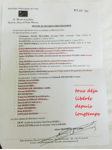 Les observateurs avertis de la vie politiques congolaise ont été surpris de lie la liste de prisonniers « libérés » – on ne sait ni quand ni comment – sous la signature du ministre Tambwe Mwamba, Ministre de la Justice.