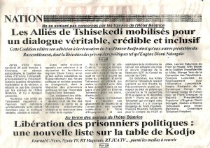 Cette Coalition réitère son adhésion à la récusation du Facilitateur Kodjo ainsi qu’aux autres préalables du Rassemblement, dont la libération des prisonniers politiques tel qu’Eugène Diomi Ndongala