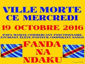 « Le Rassemblement appelle le peuple congolais à observer une journée ville morte ce mercredi 19 octobre 2016, en guise de carton jaune adressé à monsieur Joseph Kabila« , a écrit dans un communiqué son président, l’opposant historique Étienne Tshisekedi.