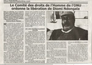 ___123___LE POTENTIEL DU 26/11/2016: « LE COMITE DES DROITS DE L’HOMME DE L’ONU ORDONNE LA LIBERATION DE L’HON. EUGENE DIOMI NDONGALA « | Democratie Chretienne, D.C.___123___