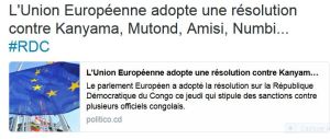 Kinshasa n’a pas encore réagi à l’adoption de cette résolution par le parlement Européen.