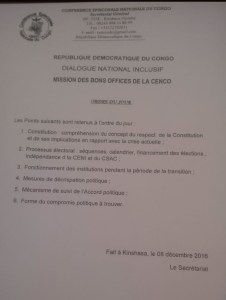 ORDRE DU JOUR ADOPTE POUR LE DIALOGUE/CENCO – DOCUMENT OFFICIEL