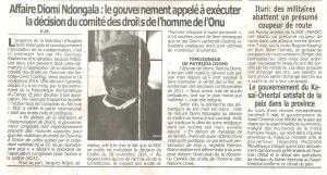 AFFAIRE DIOMI NDONGALA: LE GOUVERNEMENT APPELE A EXECUTER LA DECISION DU COMITE DES DROITS DE L’HOMME DE L’ONU / LE POTENTIEL DU 09/05/14