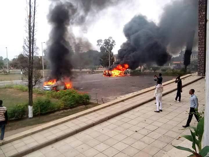 Scènes d’ emeutes à l’Université de Kinshasa, UNIKIN, en images, ce 21/07/2017, à la suite du kidnapping nocturne de certains étudiants par des services de sécurité non identifiés