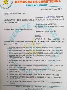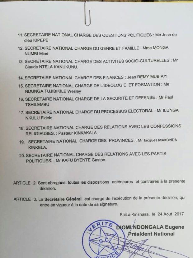 NOMINATIONS DANS LES STRUCTURES POLITIQUES DE LA DEMOCRATIE CHRETIENNE, DC: LE PRESIDENT EUGENE DIOMI NDONGALA SIGNE UNE NOUVELLE MISE EN PLACE