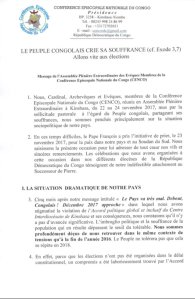 LE PEUPLE CONGOLAIS CRIE SA SOUFFRANCE / MESSAGE DE LA CENCO DU 27/11/17