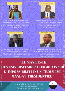 « MANIFESTE DES UNIVERSITAIRES CONGOLAIS AU SUJET DE L’IMPOSSIBILITE D’UN 3ème MANDAT PRESIDENTIEL CONSTITUTIONNEL EN RDCONGO»