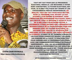 A tout cela s’ajoute le rejet, de la part de l’exécutif congolais – qui a repoussé deux fois la tenue des élections prétextant ses difficultés de trésorerie – du financement extérieur des élections. D’ autant plus que ce rejet est accompagné par le refus de l’aide logistique et technique de la Monusco. Ce qui rendra impossible la distribution du matériel logistique et électoral sur le terrain, dans les délais impartis par le calendrier électoral.Le rejet massif de la machine à voter, par la grande majorité des congolais, à cause, entre autre, de l’opacité et du manque de traçabilité du vote, en font un élément perturbateur des élections. L’ instrumentalisation d’une justice de service, qui maintient en détention les prisonniers politiques, l’inapplication du chapitre 5 de l’Accord de la Saint Sylvestre, censé baliser la route vers des élections crédibles et inclusives, sont à la base de notre dénonciation des faiblesses d’un processus, si mal préparé qu’il risque de menacer la paix en RDC.En réalité, comme l’a si bien dit le Comité Laïc de Coordination, CLC, rien n’apporte la preuve de la volonté effective de l’actuel président hors mandat de libérer le processus électoral pour la tenue effective des élections le 23 décembre 2018.Voilà pourquoi je demande aux congolais de prendre leur destin en mains pour créer des conditions de paix véritable dans notre pays et de libérer l’avenir, soutenant toutes les actions qui visent à maintenir la pression politique interne et extérieure sur M. Kabila et son régime liberticide, pour qu‘ils laissent les congolais choisir leurs dirigeants dans la paix et la liberté d‘expression, ce qui n‘est pas le cas présentement.A cet effet, je tiens à mettre en exergue les causes principales du manque de confiance dans l’actuel processus électoral exclusif, peu crédible et opaque :