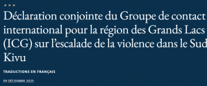 Le Groupe international de contact pour les Grands Lacs (ICG), composé des États-Unis, de l’UE, du Royaume-Uni, de l’Allemagne, de la France, de la Belgique, des Pays-Bas, du Danemark, de la Suède et de la Suisse, a publié une déclaration commune condamnant la reprise de la violence dans l’est de la RDC, en particulier l’offensive du M23/RDF autour d’Uvira.
