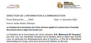 Le communiqué tiède du Président de la Commission de l’Union africaine du 11 décembre 25, qui prône la « retenue » sans oser désigner le régime de Kigali comme le principal instigateur de la déstabilisation des Grands Lacs – un silence complice qui risque d’embraser toute la région – laisse les peuples africains dans la consternation la plus absolue.
