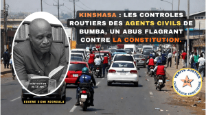 KINSHASA : LES CONTROLES ROUTIERS DES AGENTS CIVILS SEULS DE BUMBA, UN ABUS CONTRE LA CONSTITUTION