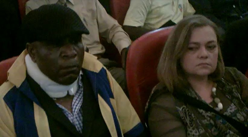 Dans la salle se lève une grande clameur et toutes les personnes qui avaient été chassées de la salle d’audience et attendaient dehors – dont des témoins internationaux – ,  commencent à protester car ils apprennent que Diomi Ndongala a eu un malheur.