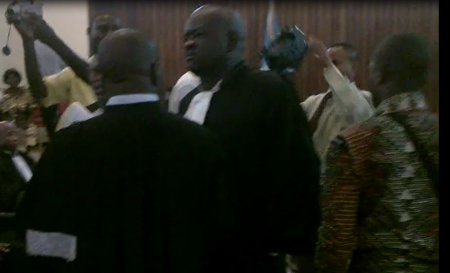 En effet, quelques minute auparavant, le Juge Président, tout en refusant la parole aux avocats de la défense, les traite de «  mal éduqués » en pleine audience et publiquement, tout simplement pour avoir demandé la parole.