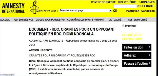 Amnesty International s’est emparée de l’affaire de la disparition de l’un des leaders de l’opposition en RDC, Eugène Diomi Ndongala, président de la Démocratique chrétienne et proche d’ Etienne Tshisekedi, l’opposant historique de l’Union pour la démocratie et le progrès social (UDPS). Eugène Diomi Ndongala a disparu depuis le 27 juin. Les autorités disent qu’il est en cavale après avoir été poursuivi dans une affaire de viol. Ses proches disent qu’il est détenu au secret.