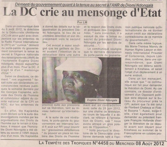 La DC crie au mensonge d’Etat / LA TEMPETE DES TROPIQUES 08/08/12